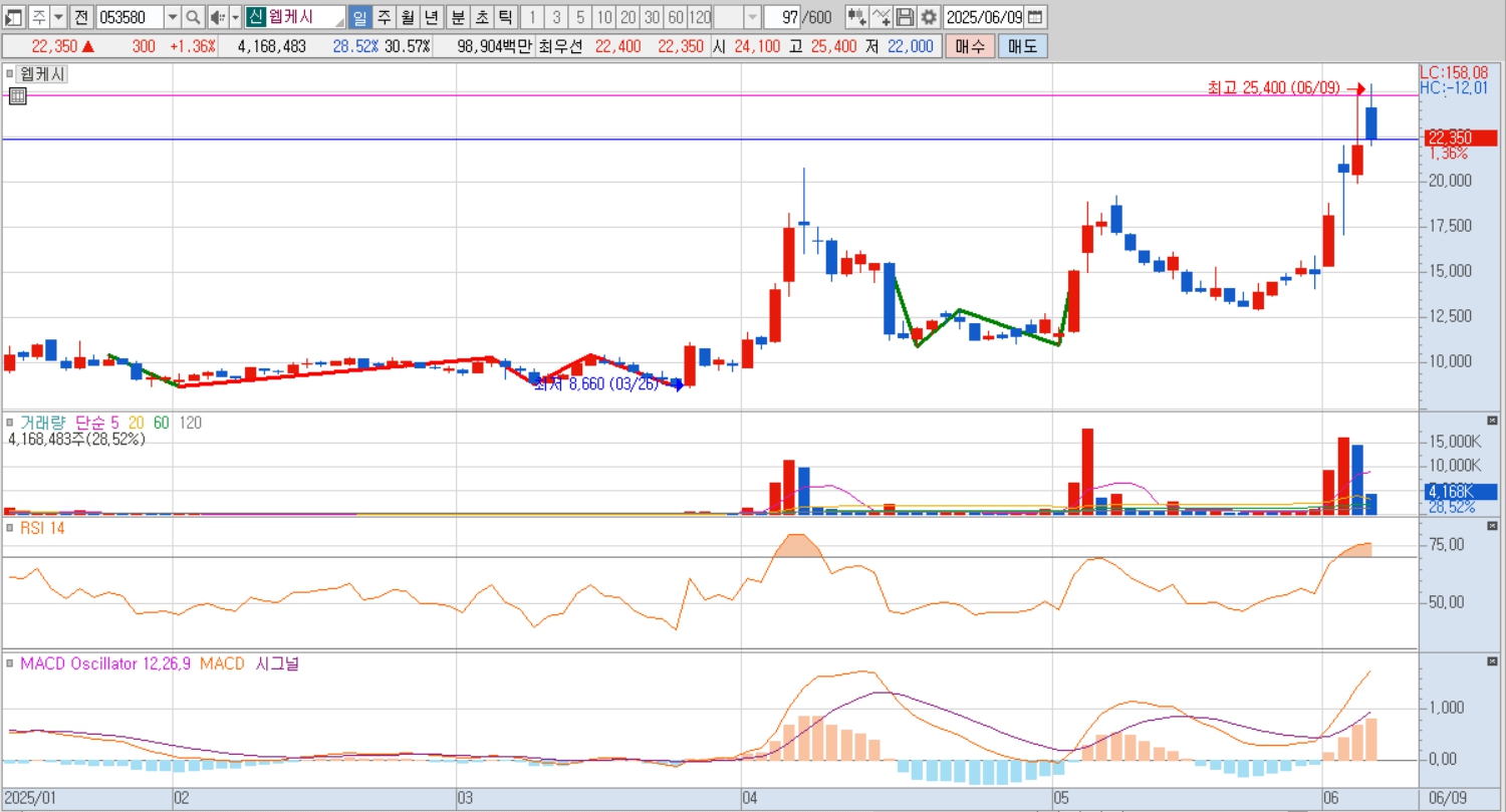 2025년 6월 1주 차 기준, 지역화폐 관련주 중 코나아이는 50% 이상, 쿠콘은 117% 이상 급등했습니다. 웹케시 또한 60% 이상의 상승세를 기록하며 지역화폐 관련주 대장 3 종목으로 집중 부각되고 있습니다. 이 같은 흐름은 단기 테마가 아닌, 정책 발표 → 실적 반영 → 시스템 확산이라는 3단 구조의 흐름 속에서 이뤄지고 있어, 지역화폐 관련주에 대한 중장기 상승 기대감이 유효합니다.