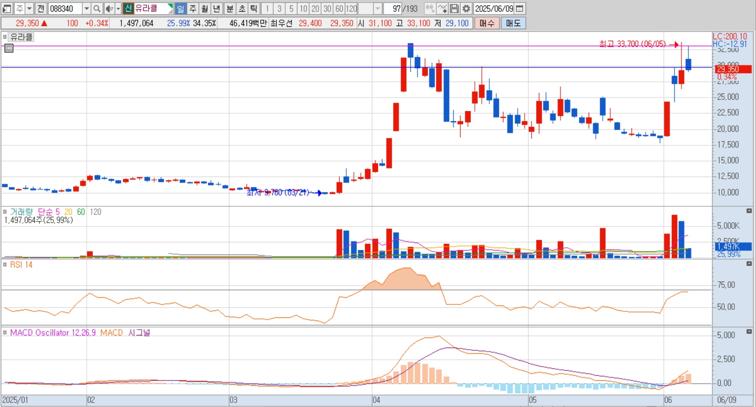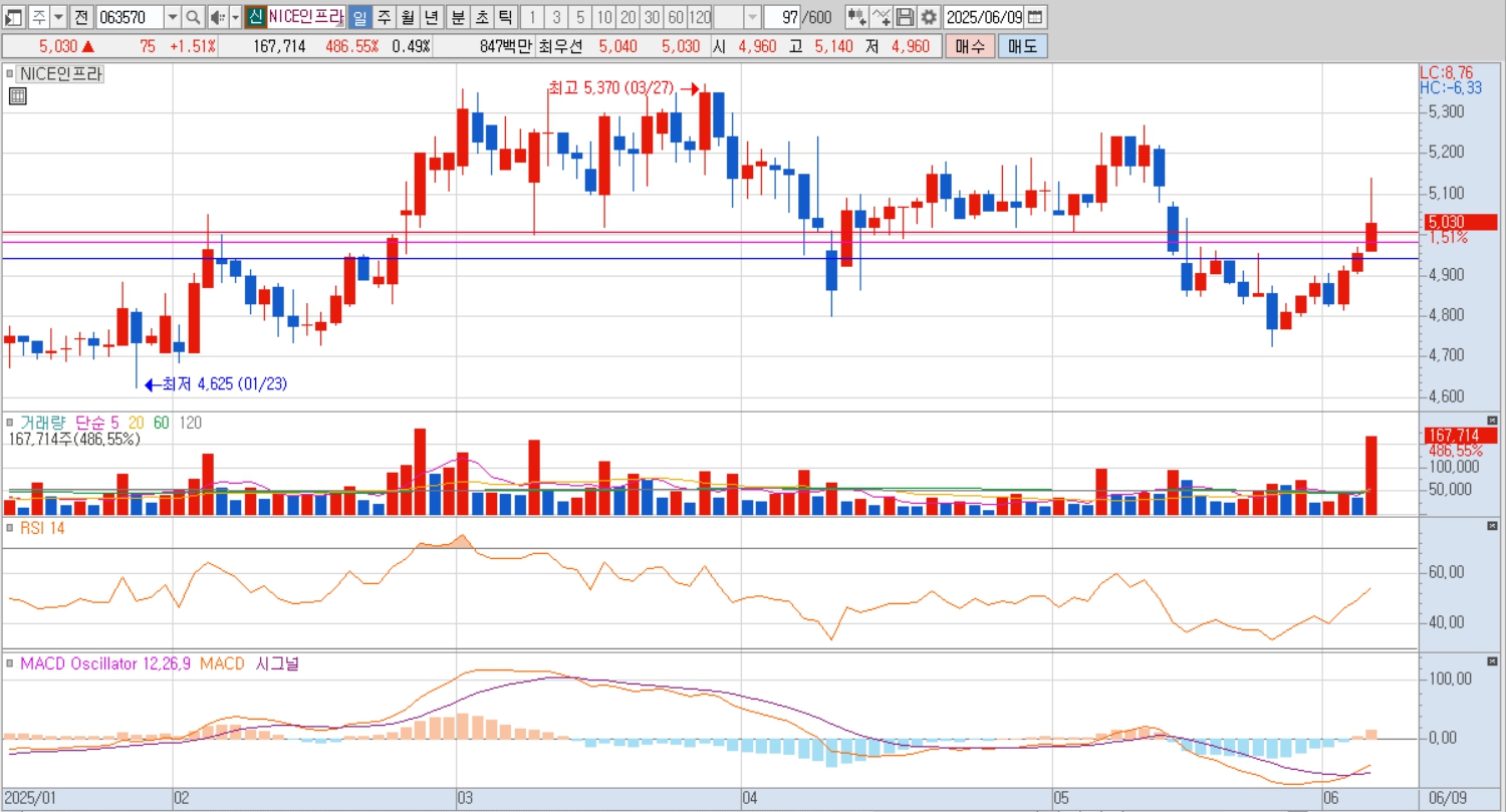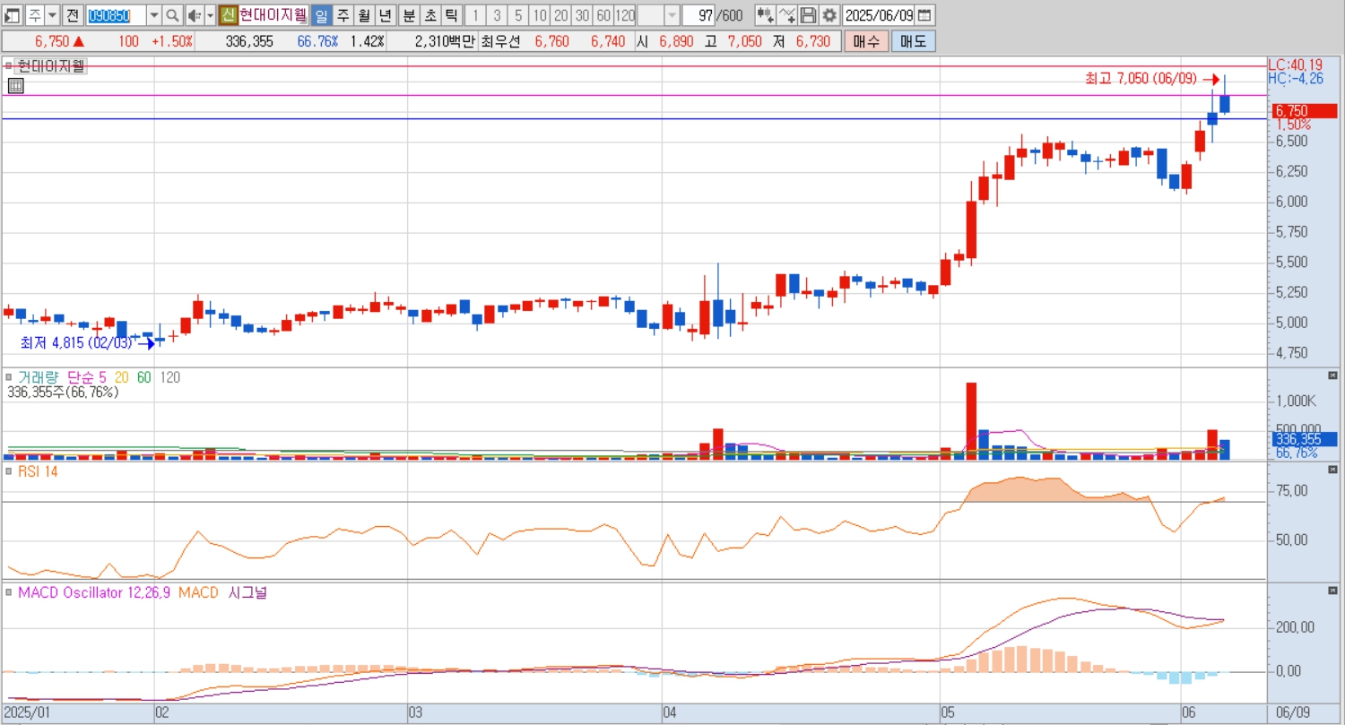 - 6월 들어 상한가 기록 및 52주 신고가 경신, 대선 이슈와 맞물려 향후 재부각 가능성